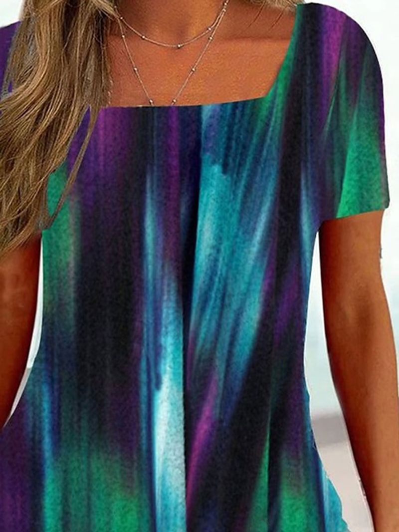 Gender:Women's,Style:Basic,Tunic,Occasion:Casual,Holiday,Tops Type:T shirt Tee,Neckline:Square Neck,Fabric:Polyester,Design:Print,Details:Without Lining,Sleeve Length:Short Sleeve,Elasticity:Micro-elastic,Look After Me:Machine wash,Wet and Dry Cleaning,Washable,Pattern:Striped,Floral,Theme:Floral,Special Size:Plus Size,